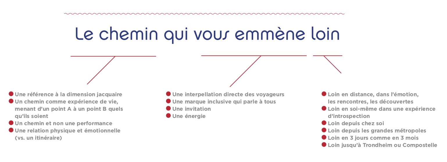 Exit le discours descriptif et l’approche géographique « Trondheim – Compostelle », place à un nouveau territoire valorisant la richesse de l’expérience « vélo », qu’elle s’étende sur 100 comme sur 1 000 km ! Un choix clair qui sert la volonté des territoires de conquérir de nouveaux publics principalement issus des grandes villes.